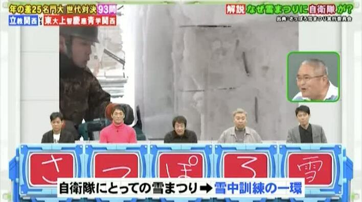 毎年2月に札幌で開催される「さっぽろ雪まつり」を答える問題では、地理担当の村瀬哲史先生が「さっぽろ雪まつり」に陸上自衛隊が協力する理由を教えてくれた。