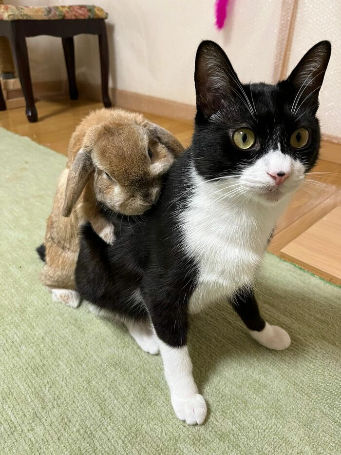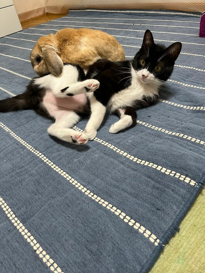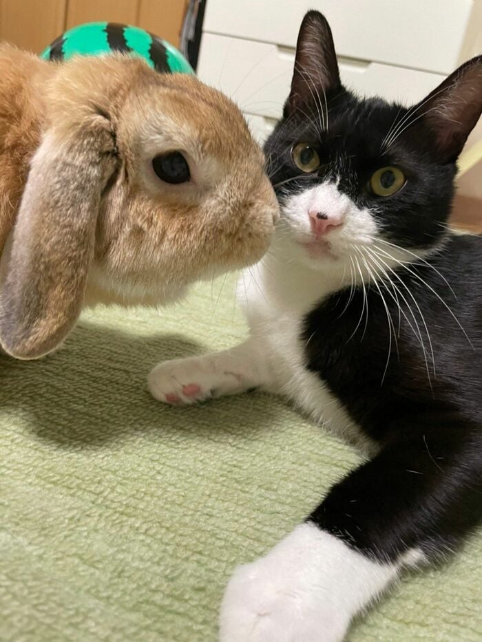 2024年11月、SNSに投稿された塩対応の猫と甘えん坊なうさぎの動画が、「可愛すぎる!」と約10万回再生(2024年11月5日時点)されるほど話題となっています!