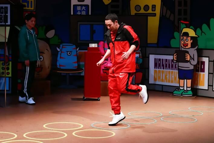 最初のゲーム「けんけんぱ」は、子どものころの遊びの定番だけに、大吉は「これミスする人いる?」、大悟も「ナメるなよ」と呆れ顔。