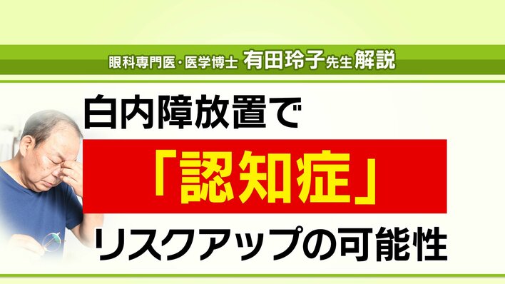 有田先生によると、「眼球は脳の一部でもあり、人間は目から8割以上の情報を得ている。白内障によってその情報が減ると、脳への刺激が減り、認知症のリスクが1.5〜2倍に増える」とも言われているそうです。