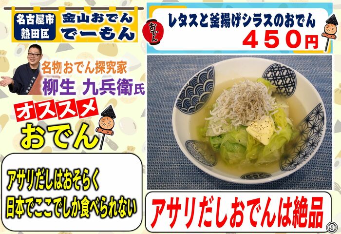 「レタスと釜揚げシラスのおでん」(450円)という創作の種もオススメです。