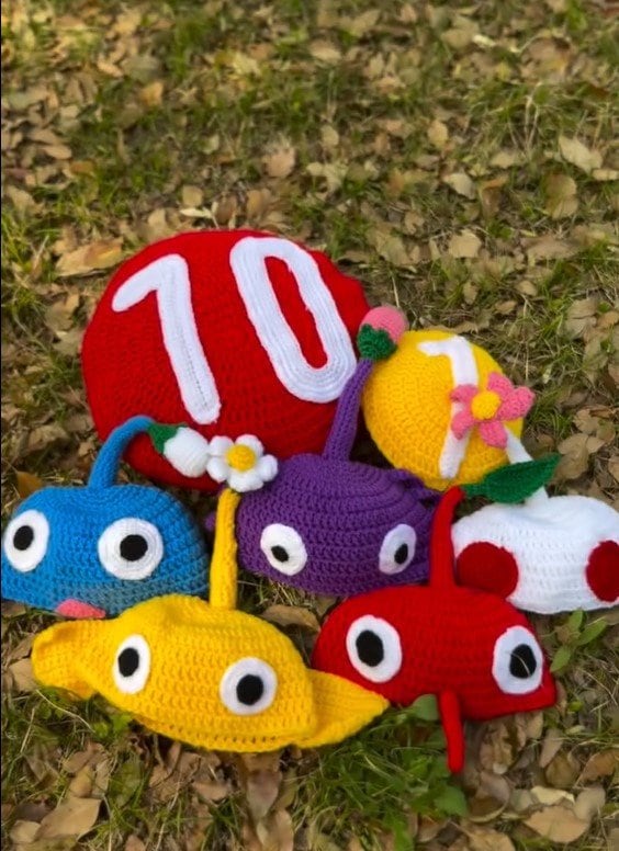 クオリティの高すぎる「赤ピクミン」「青ピクミン」「黄ピクミン」「紫ピクミン」「白ピクミン」のかぶり物に、ネット上では「編み物の天才!」「上手すぎる」と話題になっていました。