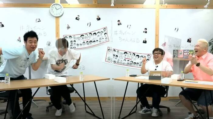 このYouTubeチャンネル開設は、6月18日(木)に同期芸人・よゐこのYouTube配信にゲスト出演し発表。その後、キャイ~ンにとって記念すべき第1回目の生配信が行われ、よゐこがゲスト出演し、今後どんな動画を配信していくのか、企画会議が行われた。