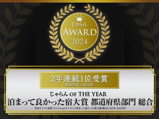 旅行サイト『じゃらんnet』、旅行情報誌『じゃらん』、観光に関する調査・研究、地域振興機関「じゃらんリサーチセンター」は、2024年度(2024年4月~2025年3月)の1年間に顕著な実績を収められた近畿・北陸ブロックの宿泊施設を表彰する「じゃらんアワード2024」(近畿・北陸ブロック)を発表。