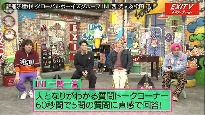 番組の後半では、西と松田のことをもっと知るために「INI一問一答!」コーナーも展開された。60秒で5問の質問に直感で回答するようにとりんたろー。から説明されると、兼近からも「気をつけてね、放送で流せないようなこと言わないでね」とプレッシャーが。