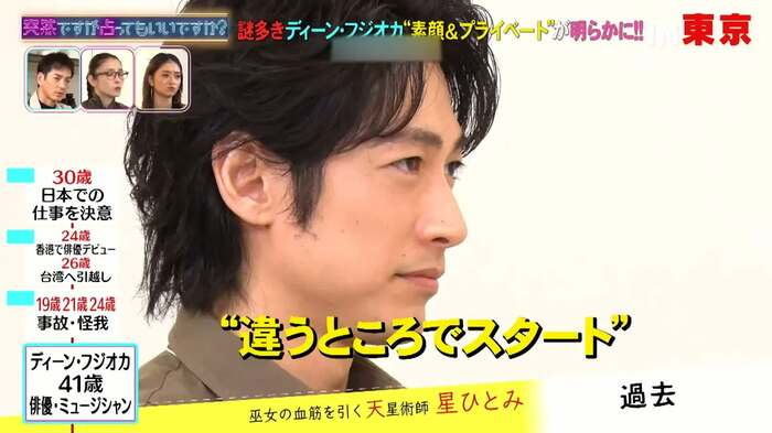 映画「Pure Japanese」(1月28日より全国公開)で企画・プロデュース・主演を務めるディーン・フジオカが、『突然ですが占ってもいいですか?』(フジテレビ)で星ひとみに占われた。