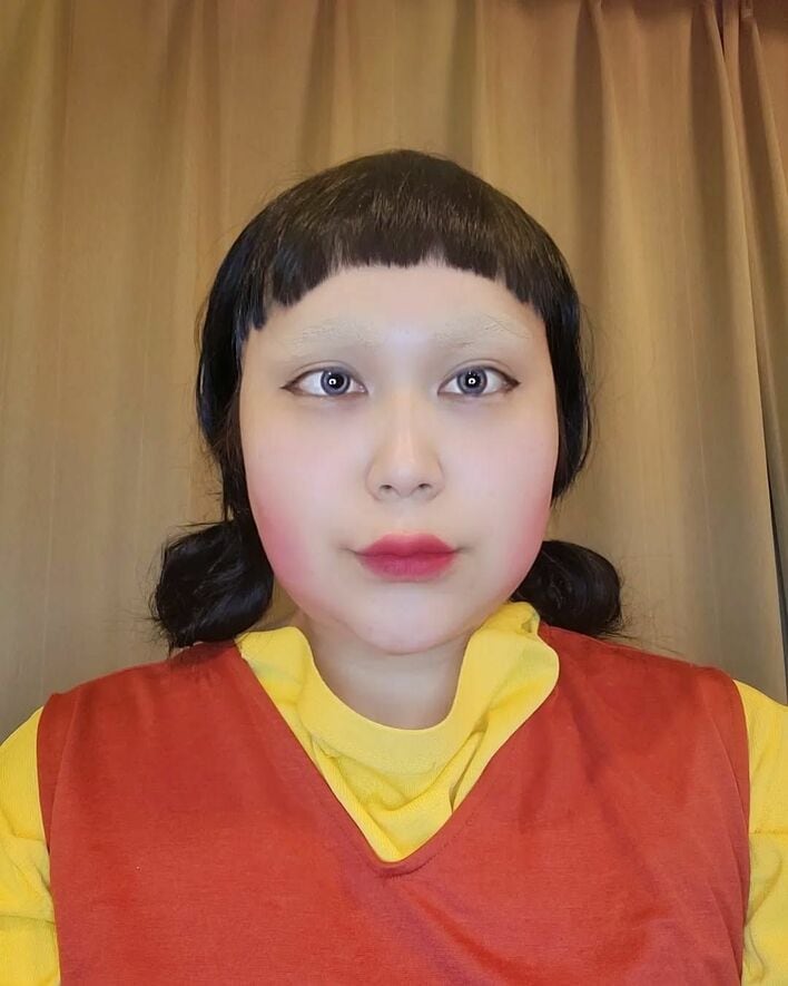 りんごちゃんが『イカゲーム』の“あのキャラ”に変身!?思わず「怖いょ…(涙」