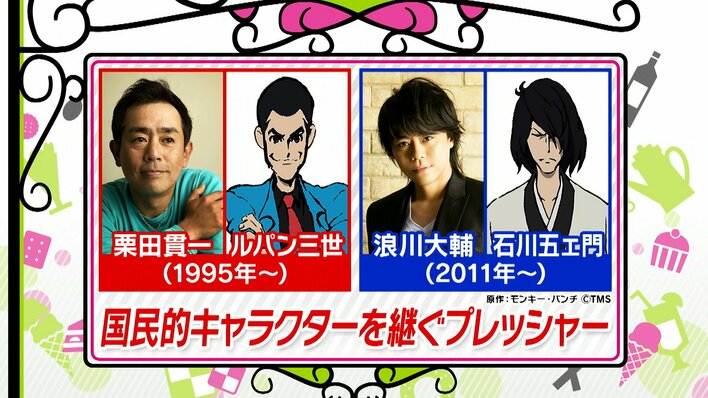 2011年は、浪川さんの石川五ェ門役をはじめ、峰不二子役を沢城みゆきさん、銭形警部役を山寺宏一と主要キャラクターの声優が交代。