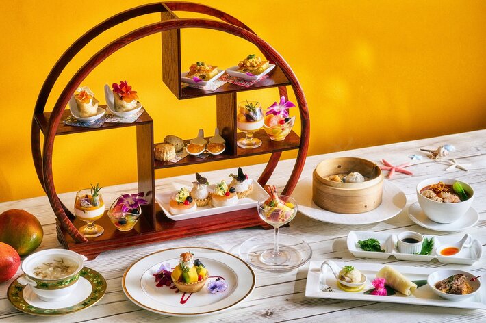 「中国料理 品川大飯店」では、この夏、イギリス発祥といわれるアフタヌーンティーに女性シェフ独自の発想や現代的なアレンジを加え、伝統的な中国料理の枠にとらわれない、“トロピカル”をテーマにした夏らしい華やかなメニューをご用意いたしました。中国料理の食材として親しまれてきたマンゴーをふんだんに使用し、広東料理をベースにしながら四川・上海・北京のエッセンスや、アジア・ヨーロッパ・南国地域の多彩な要素を融合。ジャンルや国境を超えた新感覚の中国料理アフタヌーンティーをお楽しみいただけます。
