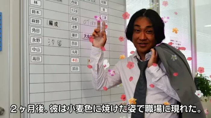 「外出行ってきます」2ヶ月後、彼は小麦色に焼けた姿で職場に現れた。