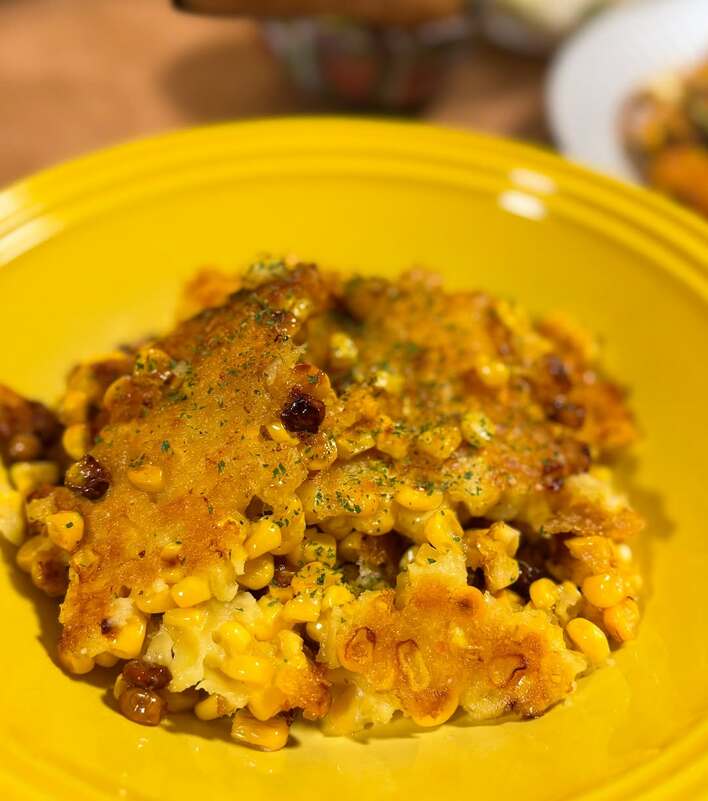 黄色のお皿に盛られた「揚げコーン」は、トウモロコシの粒がごろごろ入っていてとってもおいしそう。この料理について西山さんは「割れせん感覚で人気を得てくれていました」と、家族に好評だったことを明かしています。どんな食感をしているのかとっても気になりますね!