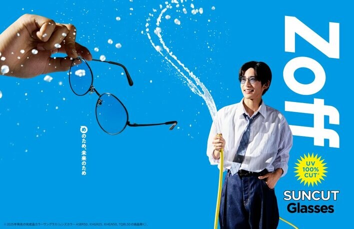 TVCM「Zoff meets 目黒蓮 SUNCUTGlasses」篇では、「めのため、未来のため」をキーメッセージに、紫外線を100%カットするサングラスを“サンカットグラス”と名付け、目黒蓮さんが軽やかにかけこなす姿を通じて、「目を守りながら夏を楽しむ」というメッセージを自然体で発信。