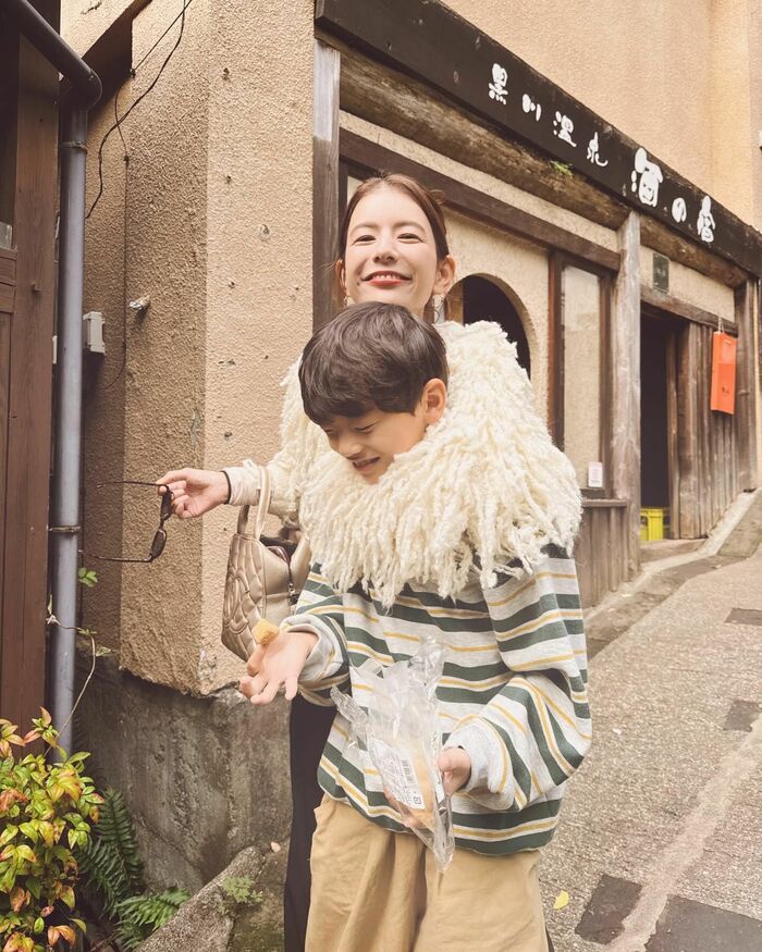 さらに、別の写真では、一緒に旅行に出かけた10歳息子の顔出し親子ショットも公開!