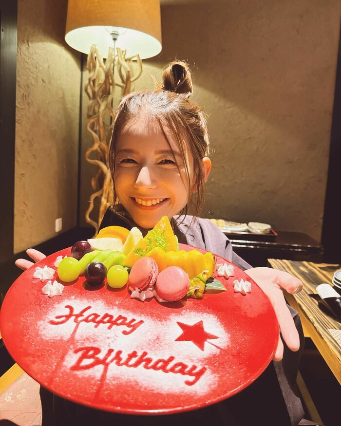 公開された写真には、「Happy Birthday」と書かれたプレートを持ってカメラに向けて笑顔を見せるスザンヌさんの姿が!