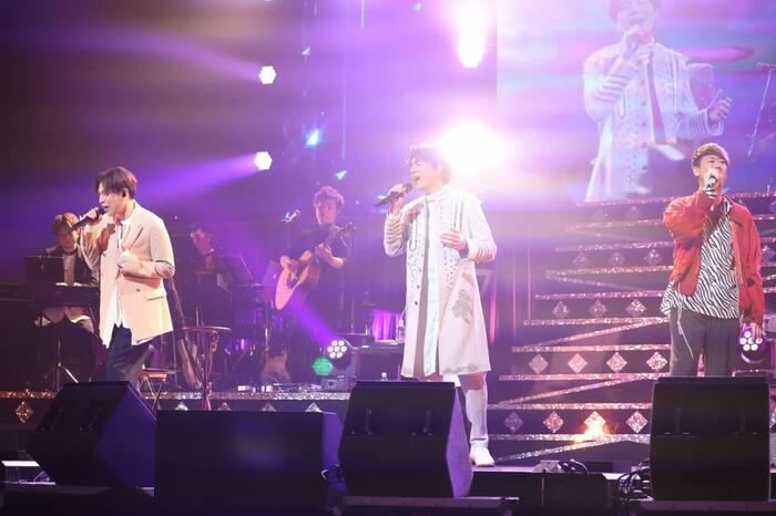 山崎は「誕生日なので、ワガママ言ってもいいですか?」と切り出し、「CHEMISTRYになりたい」とおねだり。よく聴いていたという、CHMISTRYの名曲「君をさがしてた~The Wedding Song~」を堂珍嘉邦と、「My Gift to You」を川畑要と、そして「PIECE OF A DREAM」を3人でデュエットし、伸びやかな声を会場に響かせた。CHEMISTRYの2人は、バラード「You Go Your Way」も披露し、会場をしっとりとした空気感に包み込んだ。
