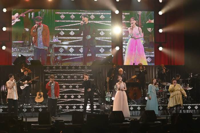 拍手が鳴りやまずアンコールへ突入すると、山崎がカバーアルバムに収録した「また逢う日まで」をこの日のゲスト全員で熱唱。さらに山崎ひとりで、『エール』(NHK)の劇中で独唱した「栄光は君に輝く」、2021年に発表した「誰が為」を続けて歌い、「また会える日が来ると信じて」とメッセージを送り、ショーは幕を閉じた。