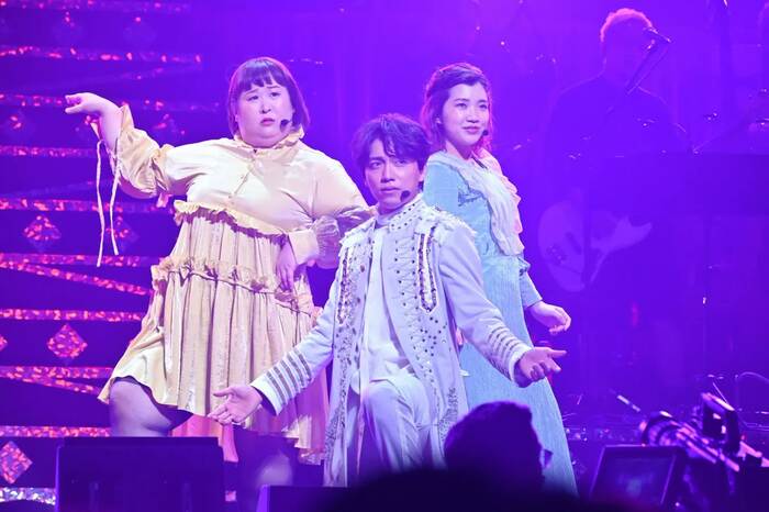 山崎が出演するミュージカルのヒロインを探すという内容で、コントの世界観のまま「ホール・ニュー・ワールド」(アラジン)を福田と、「美女と野獣」(美女と野獣)をかなでと、「フレンド・ライク・ミー」を3人でデュエットする一幕も。