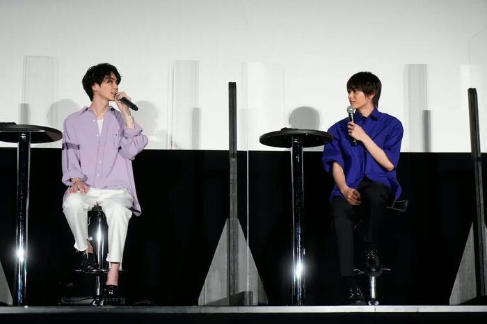 神尾は「僕はあさひくんとやってるんで、ヤバいシーンが(笑)」と妄想を掻き立てると、伊藤は「あのシーンが来たら映画館でみんなで叫んでもいいです(笑)」と共に自信満々の笑みを浮かべる。伊藤は「僕は基本的に受け身のシーンが多かったのですが、綺麗な顔が迫ってくるなぁと思ってました」と言い、神尾は“綺麗な顔”と言われたことを「嬉しいな(笑)」と喜んだ。