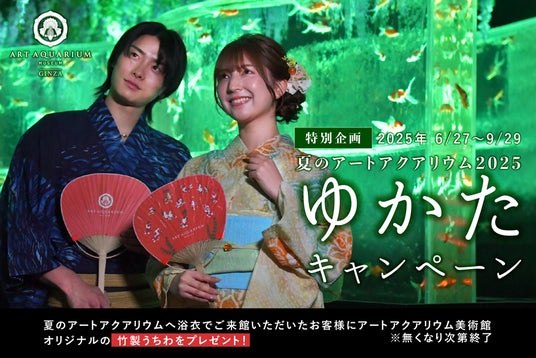 本日より期間中、浴衣でご来館いただいたお客様にアートアクアリウムオリジナルうちわ(丸亀うちわ)をプレゼントいたします。華やかで映える空間を、浴衣を着て楽しむ!夏らしい思い出づくりにぜひアートアクアリウム美術館で涼やかなひとときをお過ごしください。〈浴衣キャンペーン〉