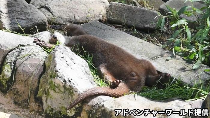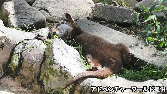 『アドベンチャーワールド』の公式Xが2024年10月12日に投稿したのは、へそ天をして気持ちよさそうに寝ているコツメカワウソの映像。「スヤァ」といびきが聞こえてきそうです。
