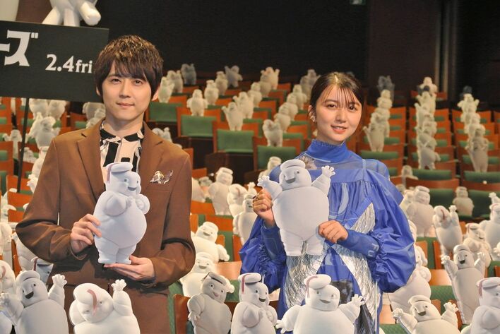 1月26日、映画「ゴーストバスターズ/アフターライフ」公開直前スペシャルイベントが東京・イイノホールで開催され、日本語吹替版の声優を務めた上白石萌歌と梶裕貴が登場した。