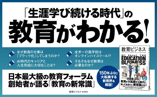 ビジネス書や実用書を中心に出版する株式会社クロスメディア・パブリッシング(本社:東京都渋谷区、代表取締役社長:小早川幸一郎)は、2025年6月27日に書籍『教育ビジネス 子育て世代から専門家まで楽しめる教育の教養』を刊行します。著者は、日本最大級の教育イベント創設者・大学特任准教授・学校法人理事など、さまざまな立場や役割で教育に関わる宮田純也氏。明治時代以来およそ150年ぶりの大転換期を迎える教育界の全体像を、公教育から私教育、EdTechまで解説した決定版です。