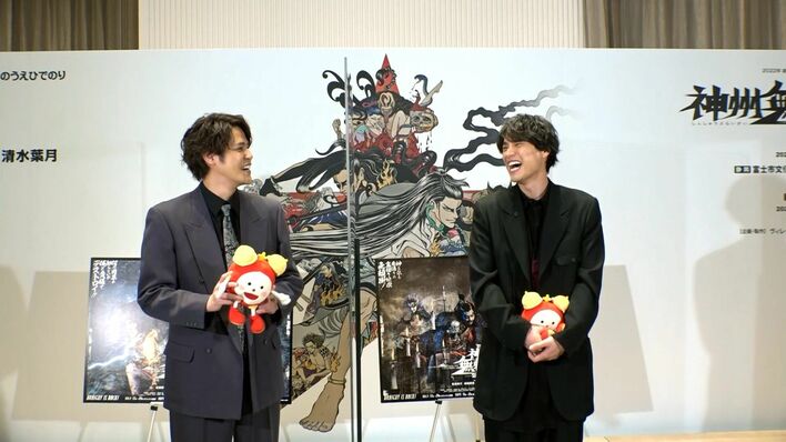 劇団☆新感線 いのうえ歌舞伎「神州無頼街」の製作発表会が行われ、主演の福士蒼汰、共演の宮野真守らが登壇。イベント中、仲良しトークを展開する福士と宮野に、フジテレビ『めざましテレビ』がインタビューした。