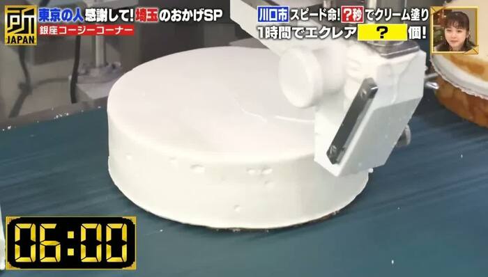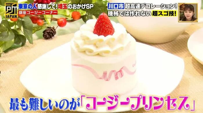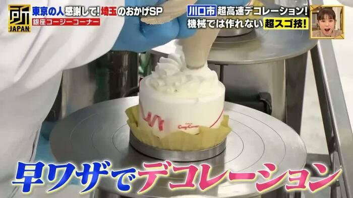 番組は、ハイテクマシーンだらけの工場で、スンゴイ人物を発見。銀座コージーコーナーのケーキといえば、華やかなデコレーションが特徴だが、繊細な形は、機械では再現できず、人の手で作業している。