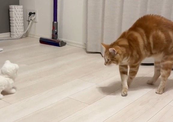 あるときには「ロイ」くんのために新しく購入した動くぬいぐるみを見て、思いっきり警戒するポーズを見せる様子や…