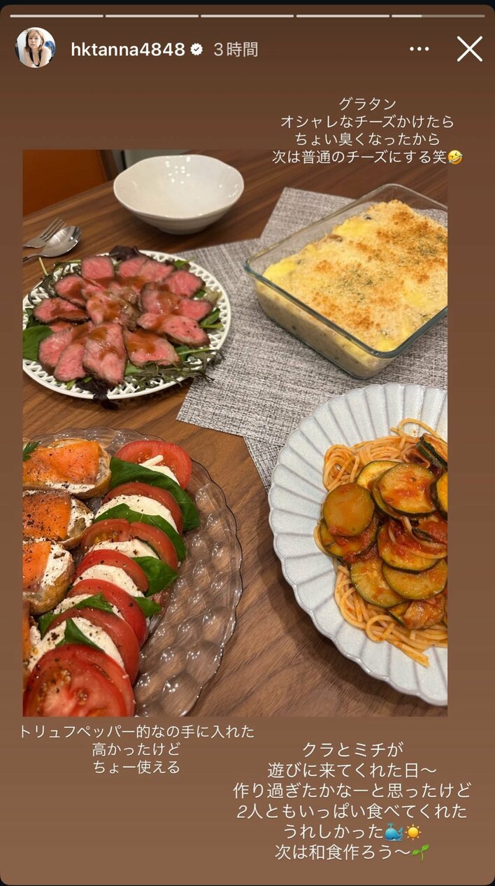 村重さんは、「作り過ぎたかなーと思ったけど 2人ともいっぱい食べてくれた うれしかった」と3人で楽しい時間を過ごせた様子。続けて「 次は和食を作ろう~」と明かしており、今度はどんな手料理を披露するのか楽しみですね。