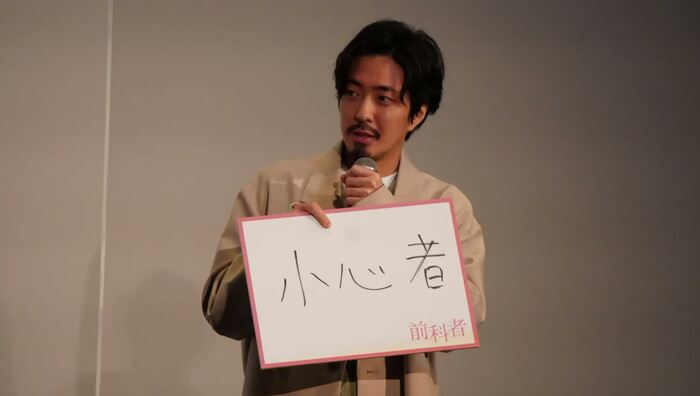 トークセッションでは、本作のタイトルにちなんで「自分は何者なのか」を発表することに。岸監督が「小心者」とフリップを出すと、若葉が「ごめんなさい、僕もそうです」と同じ回答。