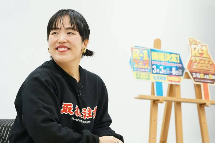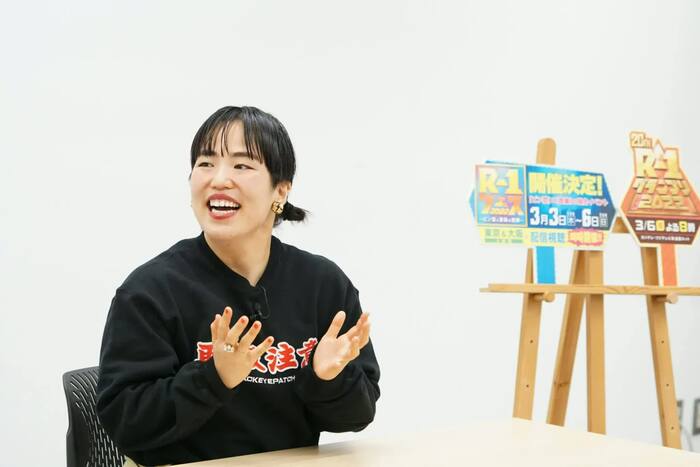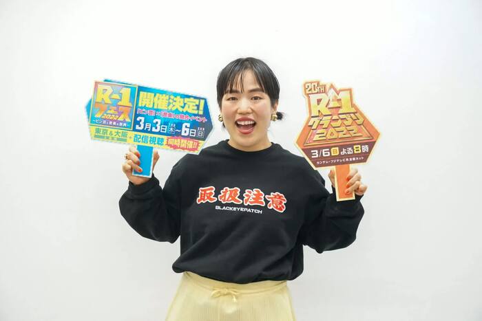 「R-1グランプリ」については、「ずっとR-1で優勝するために、毎日生きているくらいの感じでした。負けたその瞬間から、来年のR-1のことを思って、単独ライブを開催したりしていました。優勝してからも毎週1回、『スロイジ』(『2時45分からはスローでイージーなルーティーンで』/※関西ローカル で木曜MCをつとめている)でカンテレに来ているので、R-1のポスターを見かけたら、ポスターと私を指さしながら歩いてます(笑)」とコメント。