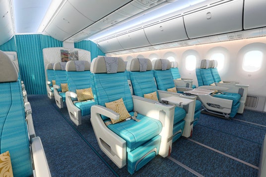 日本からタヒチへの唯一の直行便を運航。成田から週2便、約11時間、往路は夜発、復路はパペーテを朝発です。ポリネシアンらしいデザインやゴーギャンの絵など搭乗した瞬間からタヒチを体感できます。