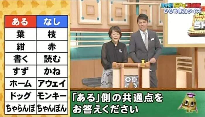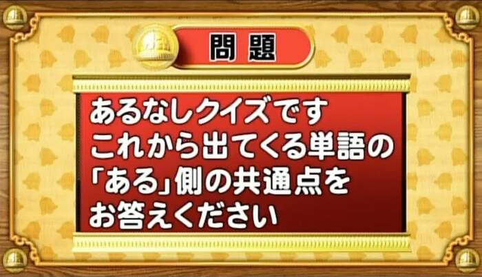 次は、あるなしクイズ。次の単語の「ある」側の共通点を答えてください。