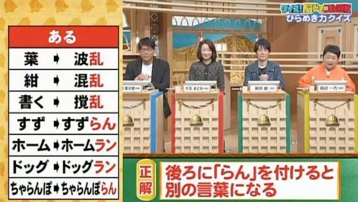 正解は「後ろに『らん』をつけると別の言葉になる」。