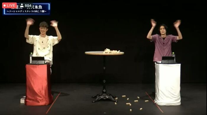 ともにレプロエンタテインメントに所属しており、普段から親交があるという稲葉と宮沢の2人が、無観客の会場でトークと対決企画を行った。
