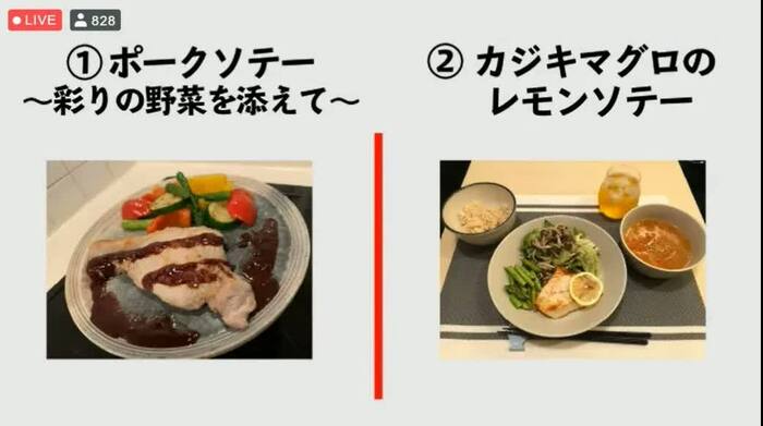 くしくも、“ソテー対決”に。それぞれが彩り豊かで美味しそうに見えるが、投票の結果は①27%、②72%ということで、②が勝利となった。