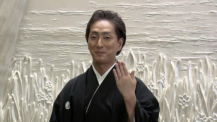 七之助さんは和装で報道陣の前に現れ、「たった今、先ほどこのホテルオークラ内の式場で神前式を行わせていただきまして、晴れて夫婦になったことを報告いたします」と、妻・杏奈(35)さんと挙式を終えたことを報告しました。
