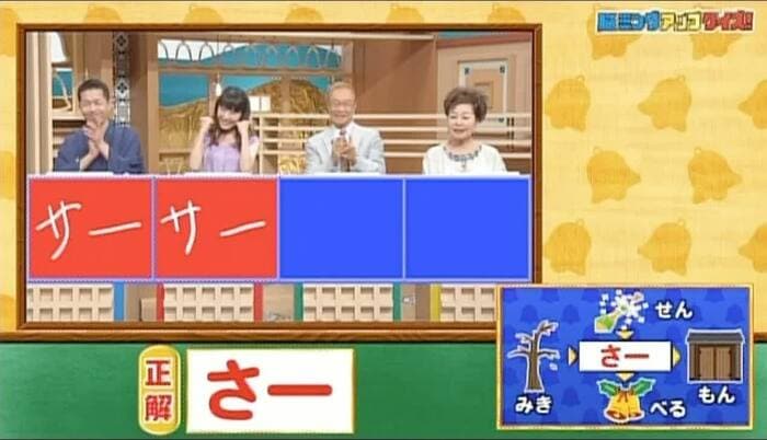 正解は「さー(ミキサー・センサー・サーモン・サーベル)」。柳家さんと五嶋さんが見事正解!