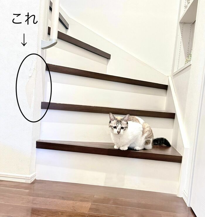 そんなミントちゃんは甘えん坊な一方で、イタズラ好きでやんちゃな一面もあるといいますが、ある日には、いたずらでおうちの壁紙を剥がしてしまったそうで、そのとき撮影した写真のミントちゃんをよく見てみると…
