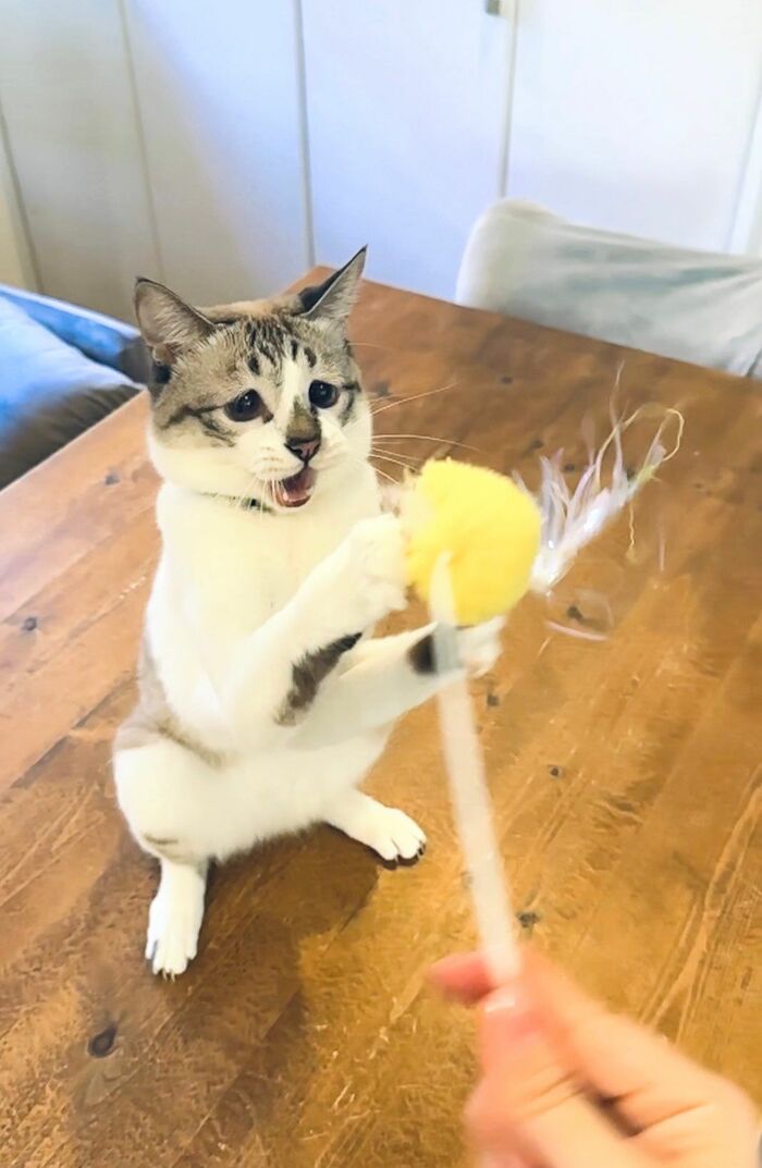 おもちゃで遊んでいても、楽しいのにどこか切なげな表情に見えてしまうミントちゃん。