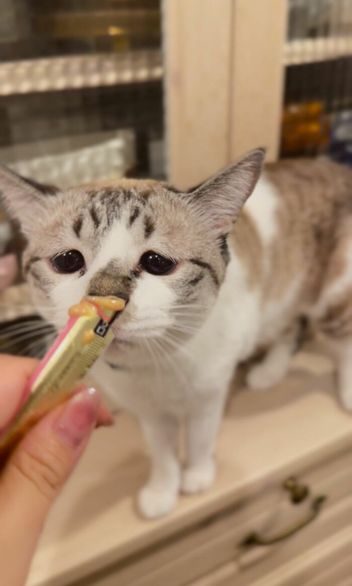 大好きなごはんを食べているときも、生まれつきの“ぴえん顔”から「もうないの?」と訴えかけるような悲しい表情になるだけでなく…