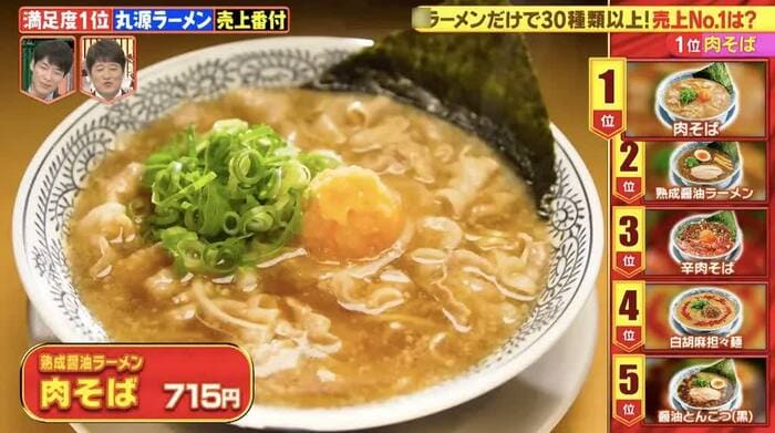 1位は、年間1000万食売れる「丸源ラーメン」の名物「熟成醤油ラーメン 肉そば」。