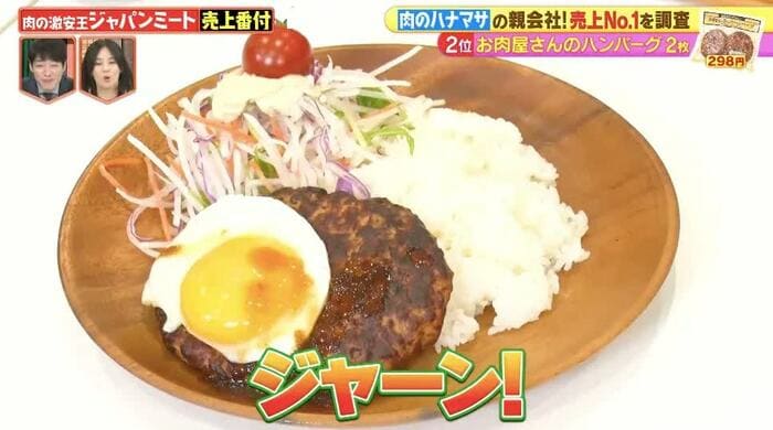 2位には、牛・豚・鶏の合挽きミンチを使った大ボリューム(180gが2枚)の「お肉屋さんのハンバーグ」がランクインした。