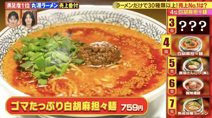 4位は、冬の期間限定メニューからレギュラー化した「ゴマたっぷり白胡麻担々麺」。