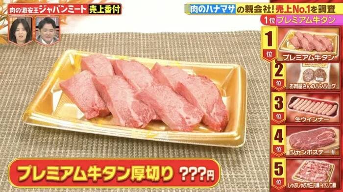 堂々の1位に輝いたのは、「プレミアム牛タン厚切り」。一度も冷凍せずに一括仕入れすることで、2〜3人前で1067円という格安価格を実現している。