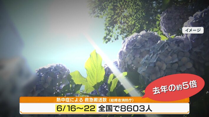 総務省消防庁によると、6月16日からの1週間で、熱中症による救急搬送は全国で8603人。これは、去年の同じ時期と比べて約5倍の数値。今年の6月がいかに異常な暑さだったかを物語っています。