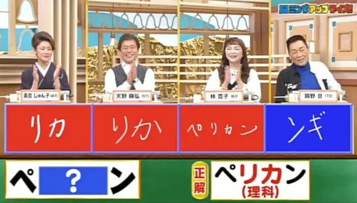 正解は「ペリカン(理科)」。美貴さん、天野さん、林さんの3人が正解。