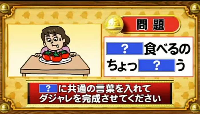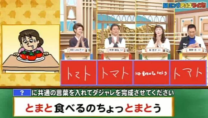 正解は「とまと(トマト食べるのちょっと待とう)」。見事に全員正解!