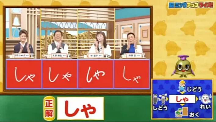 正解は「しゃ(指導者・自動車・謝礼・社屋)」。見事全員が正解!